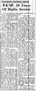 When Dearborn Founders was established during the summer of 1956, the first local business with 10 or more years of continuous operation in Dearborn to join was radio station, WKNR. It is therefore appropriate that during Dearborn Founder’s Week, February 5-12 as proclaimed by Mayor Orville L. Hubbard, this community service be recognized.